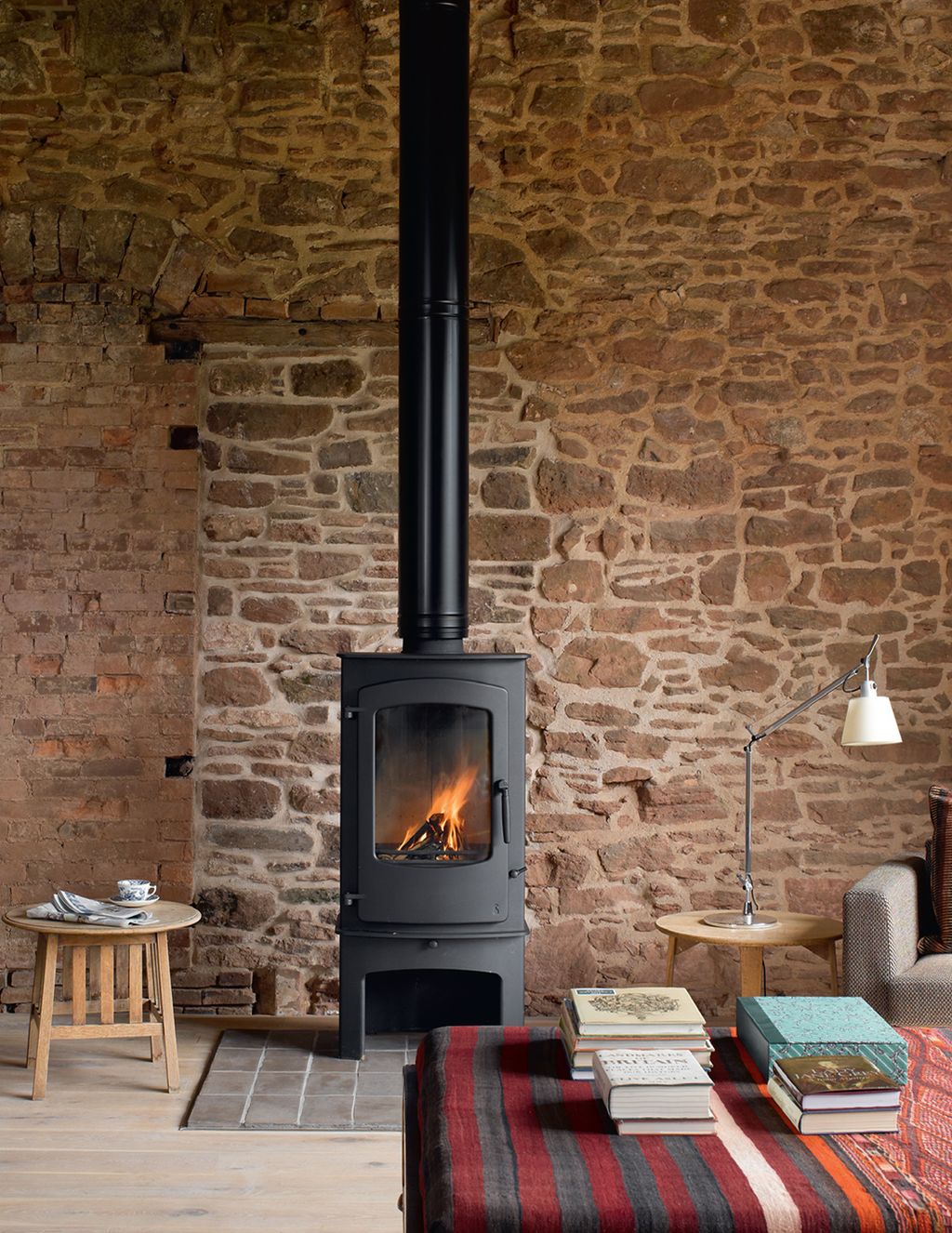 The main contractor was William Anelay, who applied traditional masonry and carpentry skills to materials selected to provide the most environmentally friendly solutions. A new feature is the central staircase, which went through three or four designs before being constructed of kiln-dried oak, with a twisting bronzed-steel baluster forged by the Devon blacksmith James Kendrew. It leads to the first-floor kitchen, dining and sitting area - a glorious space floored in bleached oak, animated by light falling on the variegated stone and by views of the historic landscape that puncture the modern, seventeenth-, fifteenth-, and twelfth-century walls.