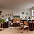 On the other side of the room, a bioethanol fireplace set in a black Formica cabinet was removed and replaced with a wall of bespoke joinery in toffee-coloured oak. A long; low section houses a record player and a corner cupboard conceals a fridge, allowing a desk to instantly morph into a drinks table. Unable to add a working chimney, but feeling that the room needed a focal point, Beata created a sculptural plaster hood above a panel of Swedish Green marble. In front of this is a cluster of beeswax candles that, she explains, in lieu of a real fireplace, 'creates a gathering place around fire. Lighting the candles feels like a bit of a ritual - there's something quite magical about it.' Also for this space, Beata commissioned an ottoman making use of a 1930 tapestry design by the celebrated early-20th-century Swedish textile artist Märta Maās-Fietterström: 'It was the first time that the weavers in the south of Sweden, where her designs are traditionally made, had ever done something like that. So it's a really special piece.'