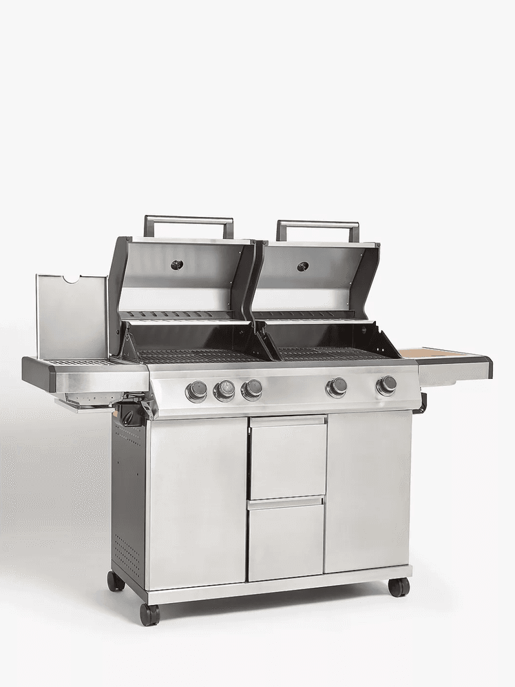This is a serious bit of barbecuing kit, capable of cooking for very large parties. This hybrid BBQ is a versatile option as it can be used instantly with gas burners or used as a charcoal BBQ if you’re looking for a smoky flavour. With five burners, a dual fuel gas and charcoal hood that can cook at different temperatures and with a side shelf and two sliding drawers, you’d be hard done to find a better BBQ for your next big garden party. There’s even a chopping board, warming drawer, ice bucket and ceramic hob for boiling water too. Simply put, there’s not much this John Lewis barbecue can’t do.