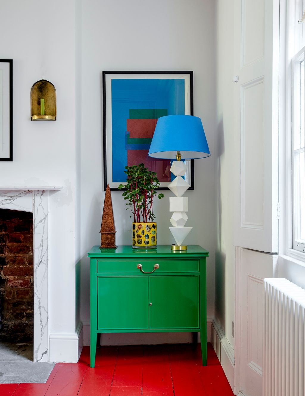 ‘The house hadn’t been updated for 30 years so, while the floor plan worked for me, I didn’t feel guilty about redoing everything else,’ Bridie says. With the help of architect Manan Upadhyay from Ben’s practice, which is known for combining classical detail with colourful, contemporary elements, various changes were instigated. The sitting room was opened up by removing a wall that blocked a window, and by expanding and squaring off the dividing arch; and a chimneypiece was brought down from Bridie’s bedroom, creating a pleasing symmetry.
