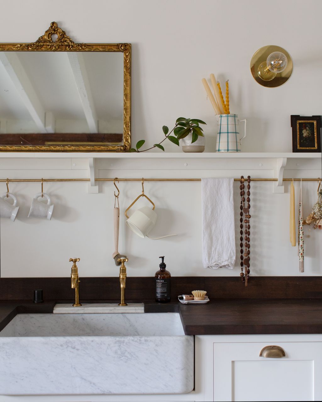 Next, Hana, Jess and Stig endeavoured to properly choose the basement's new aesthetic and discover the features that would make it personal. To do this, the trio sifted through “a lot of inspiration” by way of books, magazines, a binge-watch of the Magnolia show For the Love of Kitchens and a perusal of the deVOL catalogue ("Jess and Stig fell in love with the aesthetics," Hana explains). “It was very fun and old school,” says Hana, “not 'Pinterest-y' at all”. “I noticed that Jess cared about the details –the cabinets, aged brass taps and marble sinks – so I thought that English design would align perfectly with her own aesthetic". Hana also brought with her her own love for the “warm minimalism” practised by Belgian designers and took inspiration from Danish and British designers Danielle Siggerund and Ilse Crawford. “I believe my design aesthetic is clean but layered," reflects Hana, “I like incorporating vintage pieces whilst still having a very minimal base”.