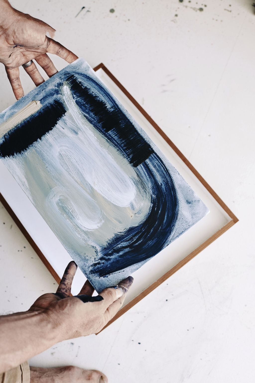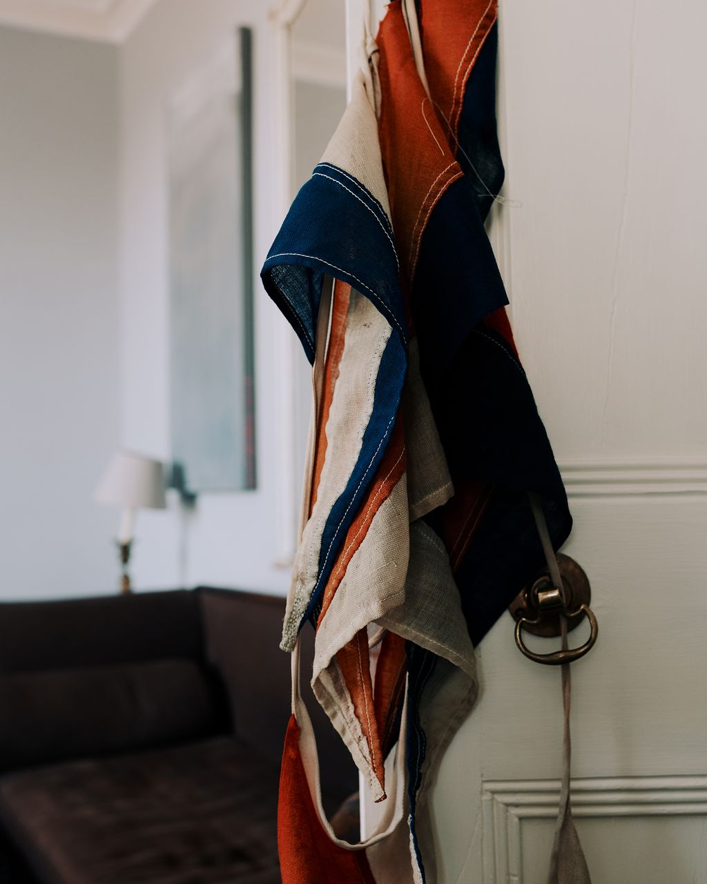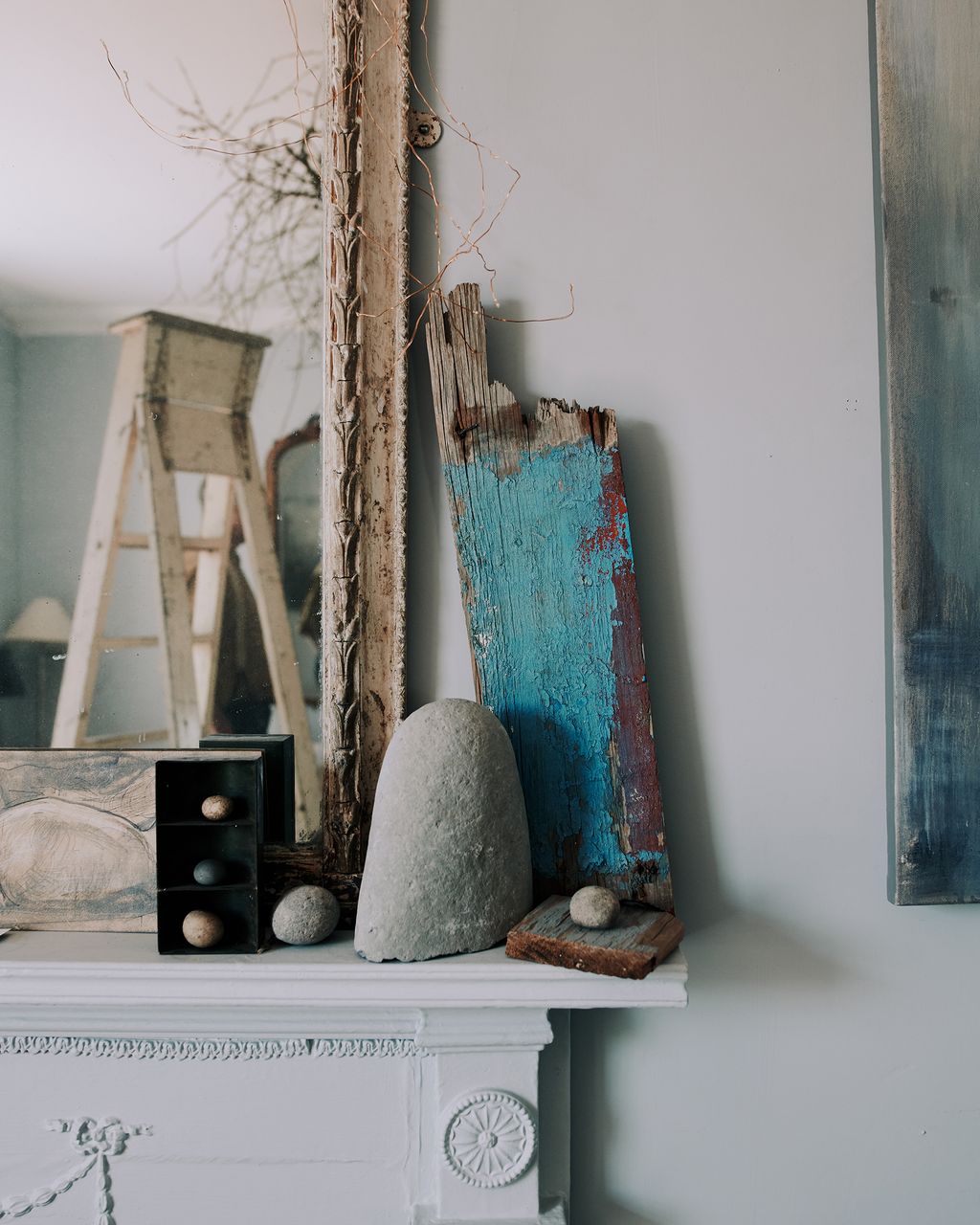 So began the idea of Nick and Bella’s Artists’ Open House events. They opened that Christmas, with a snow machine wafting snowflakes over a towering tree in the front garden, and again at Easter, when the first-floor drawing room became a Seaweed Salon, offering pressed seaweed and seaweed prints by Molesworth & Bird. Their Marine Artists’ Open House – with more Molesworth & Bird pieces, sea-inspired paintings and drawings by Nick, vintage pond yachts, jewellery and other nautical-themed delights – was timed to coincide with Belmont’s open weekend and the Mark Hix Food Rocks event last September. In April this year, it was transformed into The Garment Maker’s House, with bespoke tailoring by Kat Bazeley of BlueBarn.Life. Its walls, freshly painted in white, were the canvas for large-scale figure outlines by Nick, and a small tree in one room acted as a hanger for linen toiles of Kat’s jacket designs.