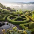 Next came the layout, starting from around the house and working outwards. Lorna may have eschewed professional design help, but gardening expertise and designer conceits abound in this ebulliently planted five-acre garden: terraces tumble perfectly into the valley mist; and elegant iron gates, carefully sited trees and oversize tubs lead effortlessly towards spectacular 'borrowed' landscape.