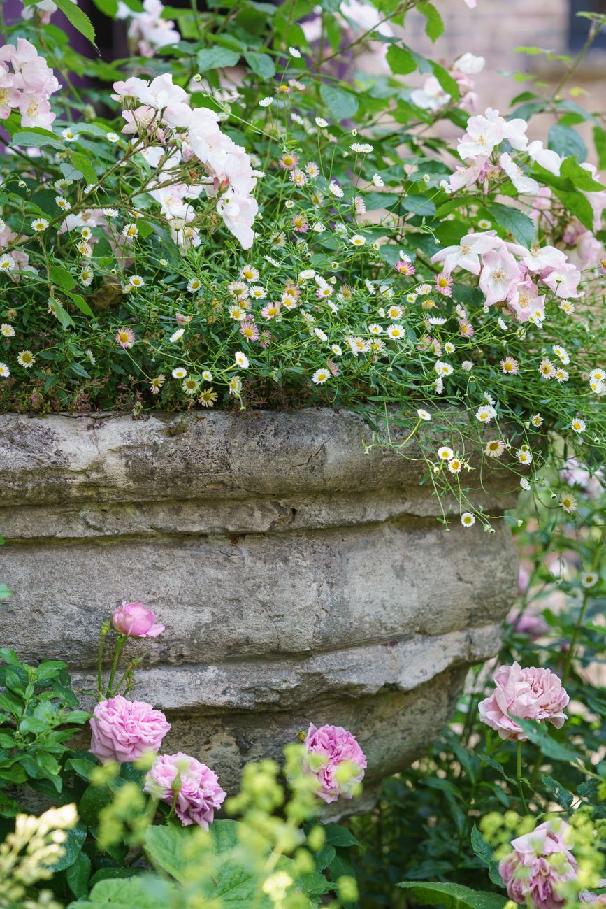 Miria then drew up a planting plan, orchestrated to fill the garden with flowers for as much of the year as possible. ‘We started with extraordinary striped tulips followed by an explosion of peonies and wisteria. But I think the roses are what make it really special. Often first and last to flower is Rosa ‘Boscobel’ and we have masses more, including ‘Little White Pet’, ‘Gertrude Jekyll’, ‘American Pillar’ and ‘Cardinal de Richelieu’. They are chosen for fragrance and colour, which ranges from white and soft pink to deepest burgundy.’
