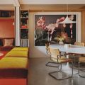 In the seating area – the conversation “platform”, because it was raised to meet the rerouted staircase – it was Ben and Rae who insisted on bold colour, says Louis (they also initially championed the ‘Tulip’ table). “I was thinking of doing something a bit more muted. [They] were like, ‘No, we want more colour, we want this big, bright corner.’” In the end, the colour scheme ended up a rich (alimentary) combination of salmon pink and mustard crushed velvet. Louis points out that this format – a relatively muted house with the odd commitment to strong colour – is typical of Neutra and Lautner. “There’s lots of timber and calm materials, but then there’ll be a bright green worktop or something along those lines.”