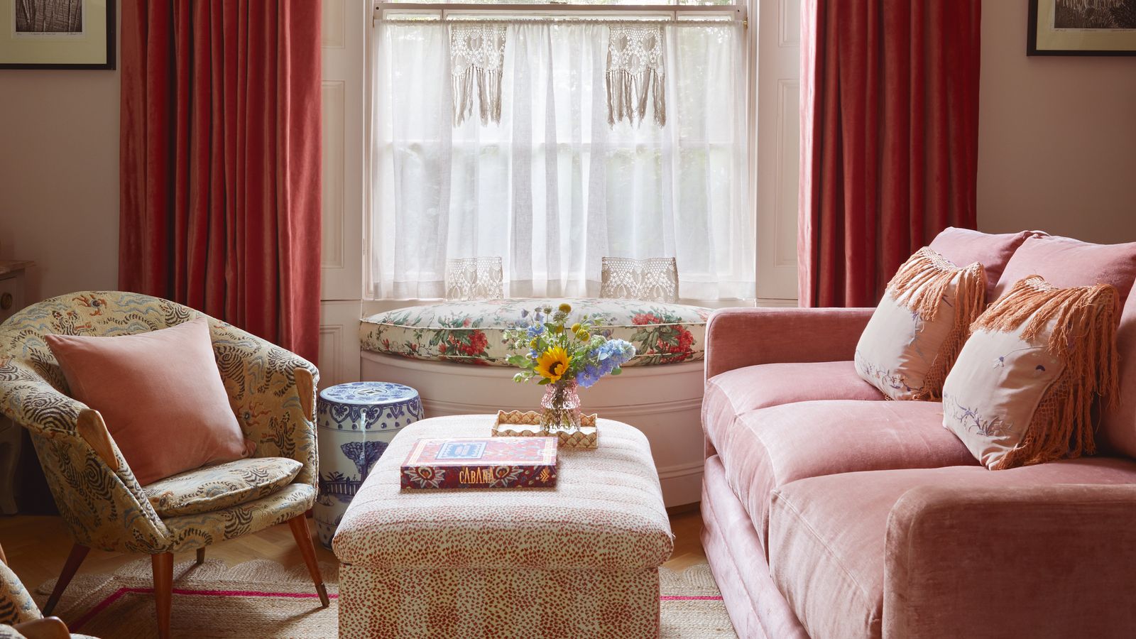Form and function are closely aligned in this city home. Furniture is upholstered in hotel-grade fabric to withstand wear and tear and scotch-guarded so that the family’s dog, Amber, can leap on the sofa. Edged sisal rugs and copious painted joinery are a practical touch. Yet woven through these schemes are a number of playful or unexpected additions. The sitting room sofa is upholstered in Guy Goodfellow’s informal ‘Hendrix’ fabric, complemented by a fender finished in pink leopard print. The main bedroom features a fabric wall treatment and a half tester to lend the bed some grandeur, plus a built-in window seat surrounded by books whose spines deliver a hit of colour. ‘The bookcase was an ideal addition given that I am a school librarian,’ says Katharine. ‘It also has the effect of drawing the walls in, for a cosier feel. The room now has the atmosphere of a Georgian country house.’ It is a treatment that shows that not all city homes have to feel urban. ‘London is a vast, mixed metropolis, yet we never lose sight of the fact that it started life as a patchwork of small, loosely conjoined villages,’ says Mary Graham. ‘So a city home does not have to be deeply modern. A house in a green, leafy area like this one will have a very different atmosphere from a Shoreditch loft or a glass-fronted newbuild in the centre of town.’