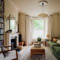In the kitchen, this aversion to trends is manifested in a high-low mixture of Shaker style cabinetry, a table picked up years ago from Anthropologie which has followed Tanya from house to house ever since, contemporary lighting bought from Pinch and a former lab desk from a science classroom whose etched-in graffiti tells the story of its previous life. But it's the sitting room that says the most about who Tanya is. Built-in bookshelves heave under the weight of her favourite titles while a grand piano takes centre stage in the ‘middle room’. Here, layers of texture deliver the cocooning warmth she wanted. Linens on the sofa, cafe curtains and cushions are offset by a walnut and bouclé armchair, a rug from Vinterior and a mid-century cabinet given to Dan by his parents.