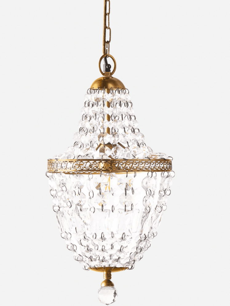 If you’re nervous about filling your main living areas or bedrooms with gilded glamour, why not start with a smaller, more private space? This bathroom of hotelier Cristina Lozano’s holiday home in the Basque country is the epitome of chateaucore, with its luxurious wallcovering and blinds, gilt mirror and crystal chandelier cleverly contrasted by natural materials and textured finishes.
