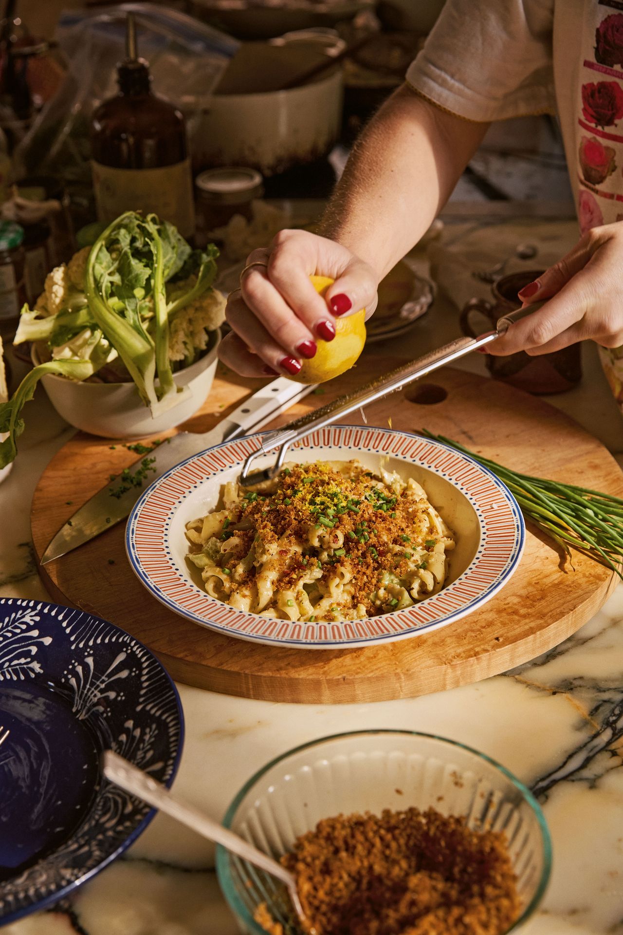 This recipe is wonderful for many reasons: A whole head of cauliflower caramelises in a skillet before being simmered with cream, black pepper, pecorino cheese and a bit of lemon zest, breaking down into a special (and yes, decadent) sauce to coat the pasta shape of your choosing. It’s all very dreamy. But really, it’s the pecorino breadcrumbs we’re here for, and that’s okay – they’re magnificent. A crunchy, oily, salty vehicle for more cheese and much-needed texture, they’re the ideal finish to a saucy pasta such as this, but don’t stop there. Use them as tiny croutons to finish a Caesar salad or scatter them over the top of a pot of saucy beans. Once they’re in your life, you’ll never want to be without them.