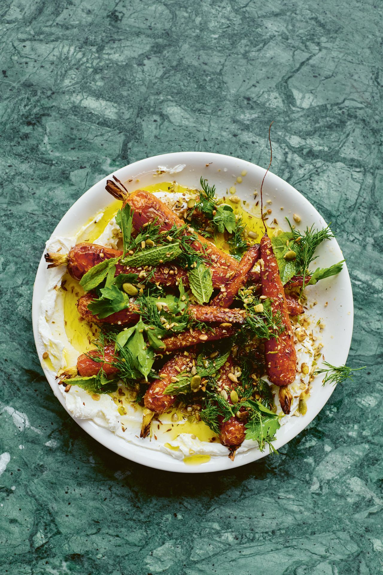 Make sure to get a good char on the carrots here, to achieve the strength of character that this dish needs. Lovely thick yogurt pulls it all together well. My book includes a recipe for hung yogurt, but you can easily substitute it for thick Greek yogurt here. It is great as a side dish or starter.