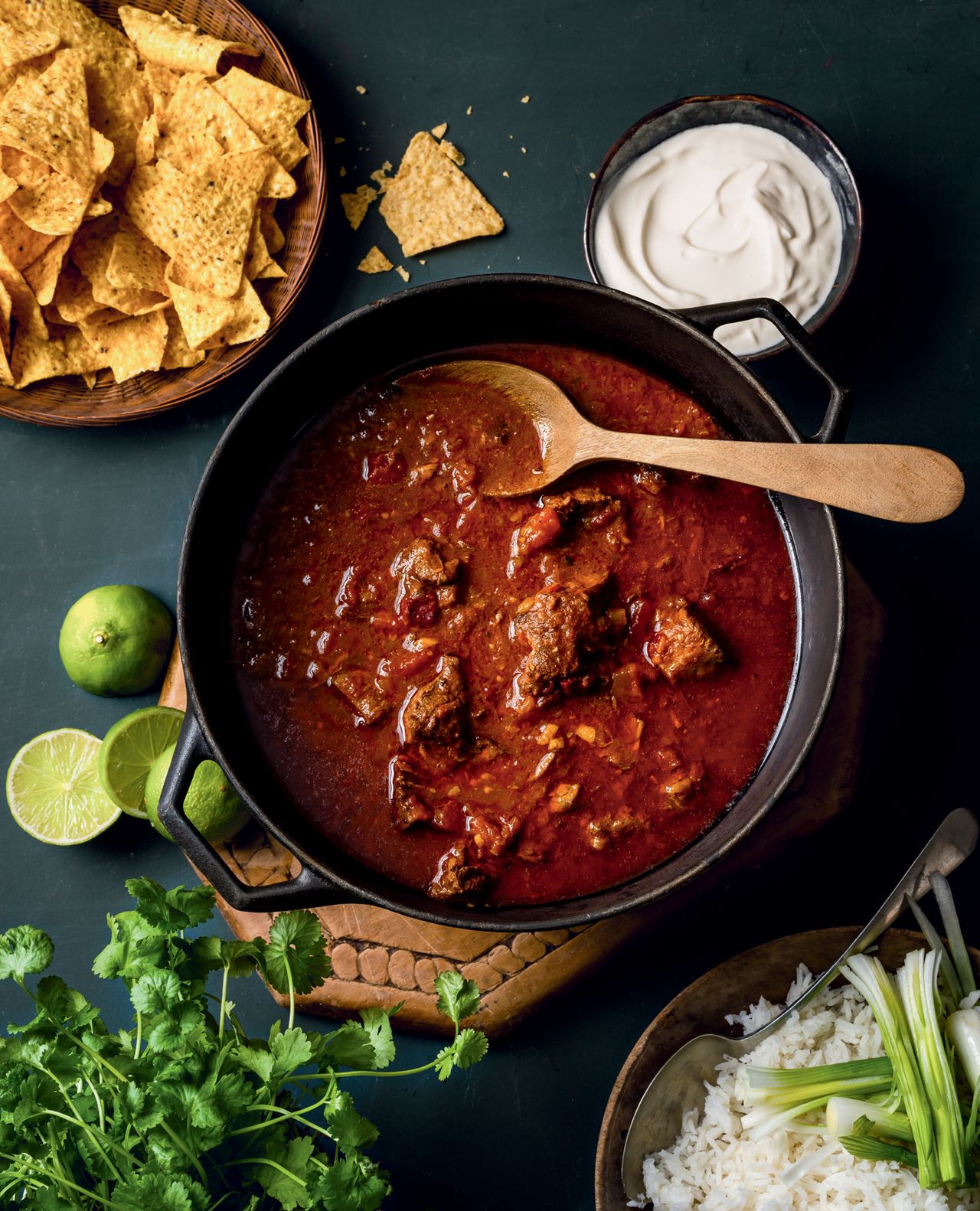 The perfect alternative to a traditional chilli, the warming flavours of Rowley Leigh's chilli recipe are perfectly offset by the sharp sour cream